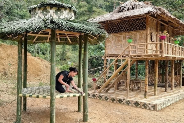 Beautiful bamboo hut design offering natural charm, strong structure, and peaceful relaxing atmosphere.